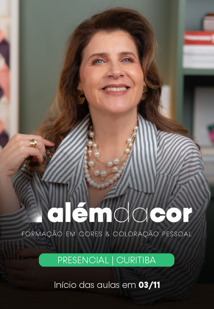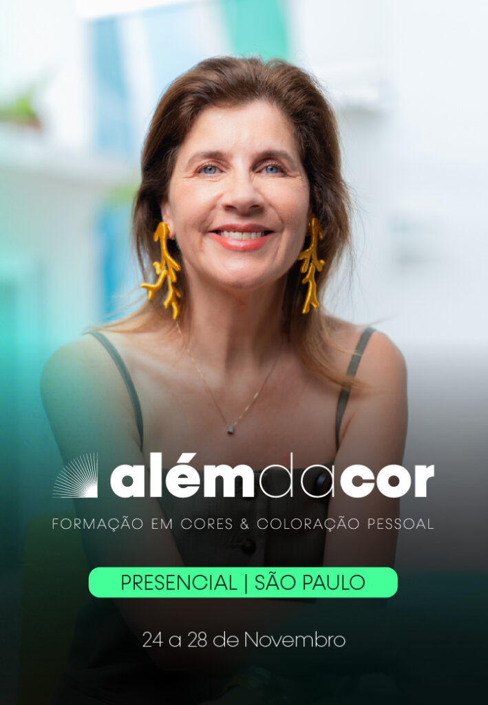 Na Formação Além da Cor Online, ela te entrega um conteúdo completo e aprofundado, que não apenas te torna uma especialista certificada em Coloração Pessoal, mas uma especialista em COR, sabendo trabalhá-la em áreas como varejo, proporção corporal, estilo e muito mais.
